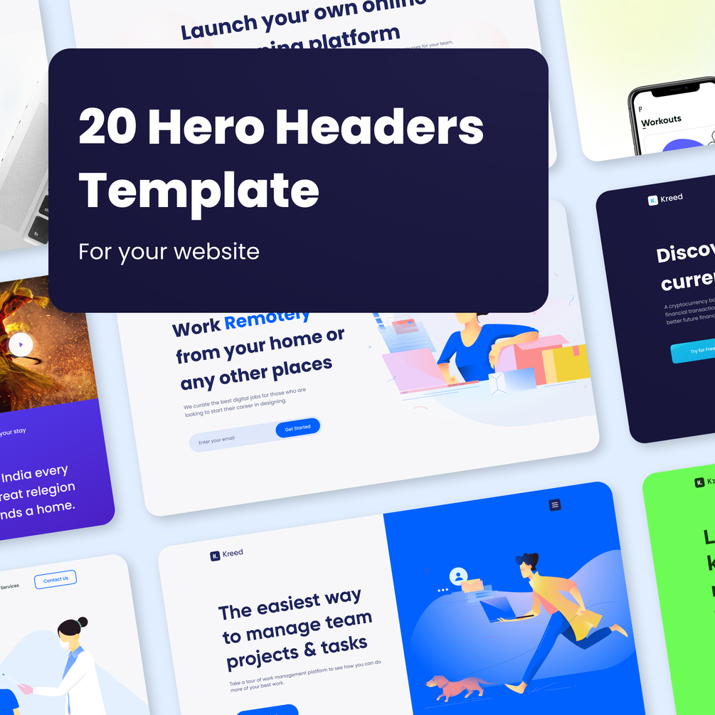 Kreed - 20 fresh & creative website hero headers template for your website project.